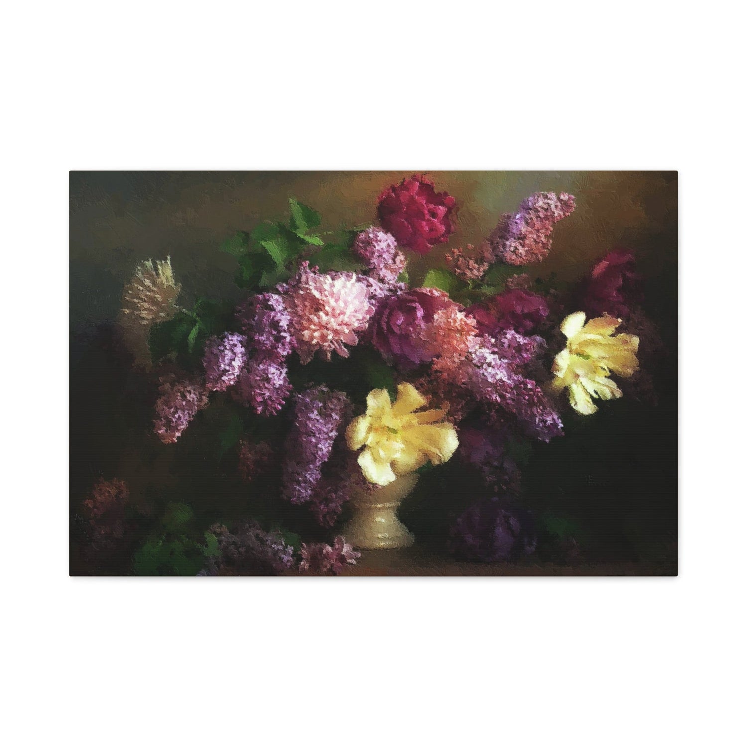 Giant Lilacs Floral Bouquet Art Print Stretched Canvas Purple Wall Décor