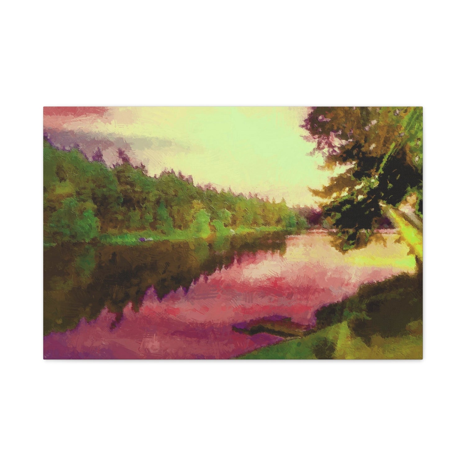 Summer in Cyprus Art Print Stretched Canvas Wall Decor Abstract Green Pink